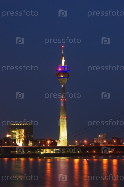 Медиен-Хафен и башня Райнтурм ночью, Дюссельдорф