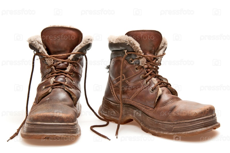 Старые коричневые ботинки на белом фоне
