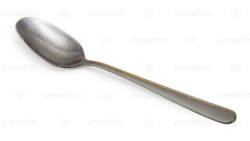 Металлическая ложка крупным планом на белом фоне