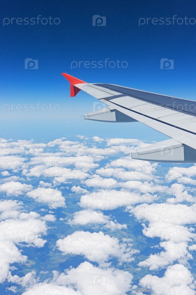 Фрагмент крыла самолета над облаками