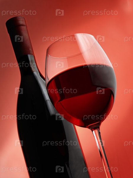Бутылка и бокал красного вина