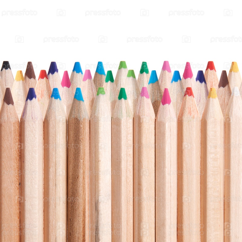 Цветные карандаши крупным планом на белом фоне