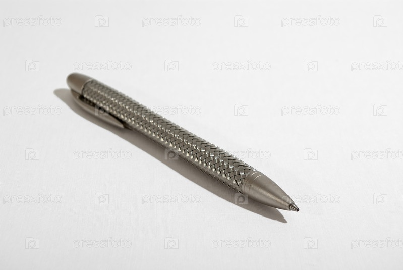 Серебристая щариковая ручка на светлом фоне