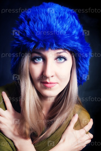 Портрет красивой блондинки в синей шапке