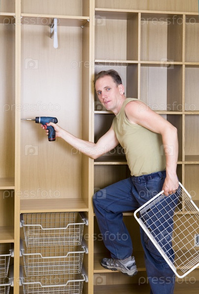Мужчина занимается сборкой мебели