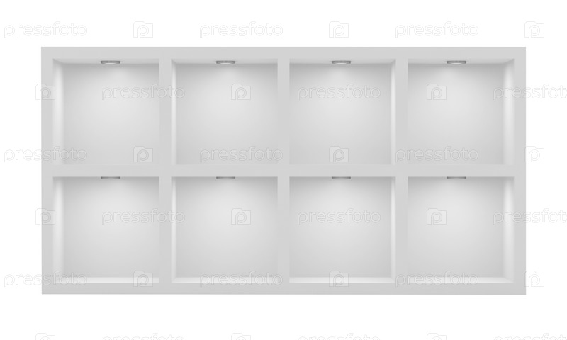 Пустая белая стойка с подсветкой полок