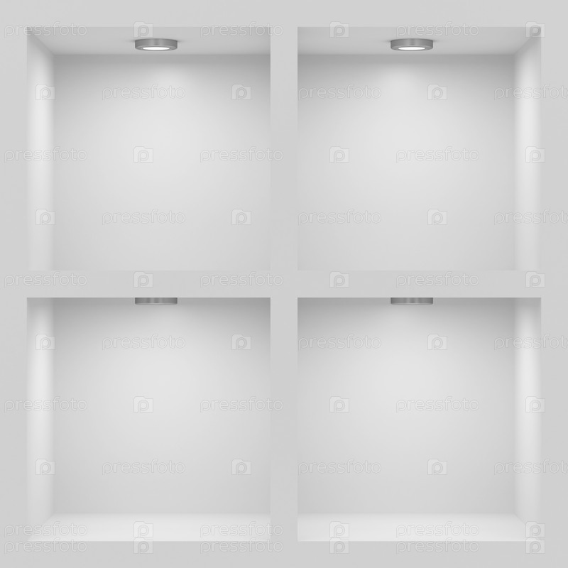Пустая белая стойка с подсветкой полок
