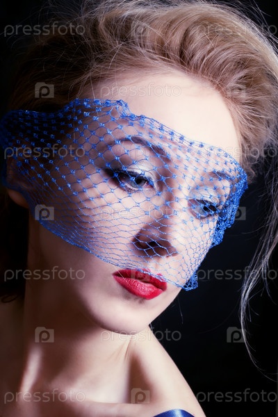 Портрет молодой голубоглазой женщины в вуали