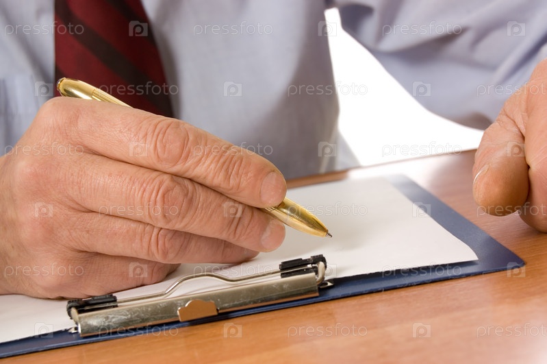 Рука мужчины, заполняющая документ