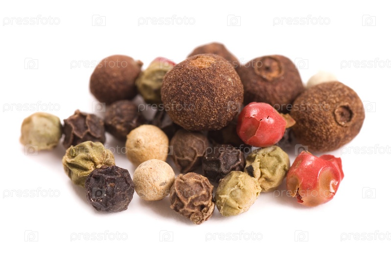 Черный, белый и красный перец на белом фоне