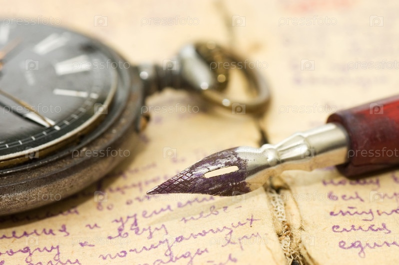 Карманные часы и перьевая ручка на старых письмах