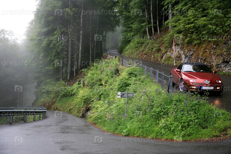 Туман на дороге в Альпах
