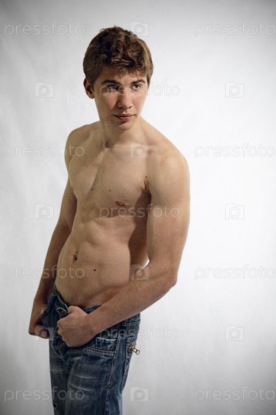 Полуобнаженный парень на светлом фоне