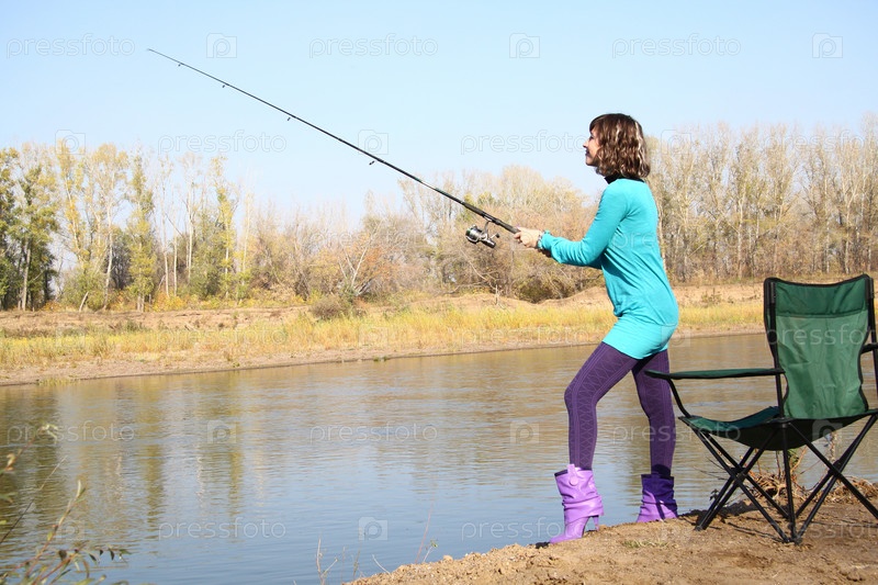 Молодая девушка рыбачит