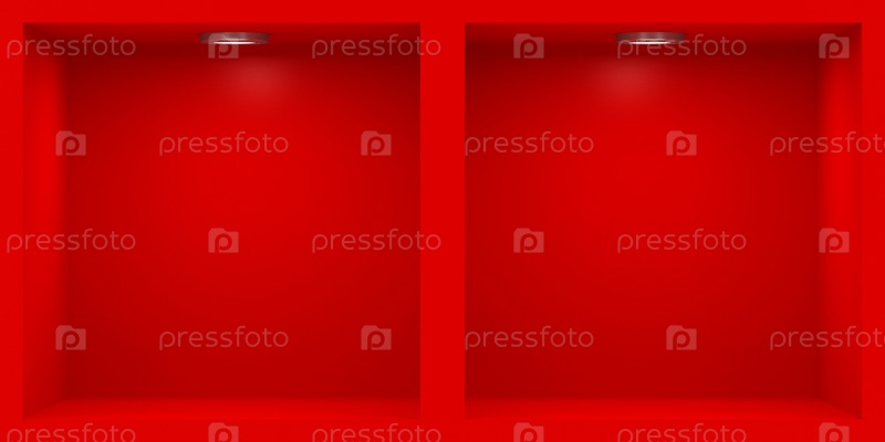 Пустые красные витрины с подсветкой