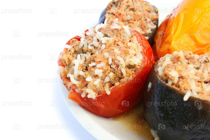 Фаршированные овощи на тарелке на белом фоне