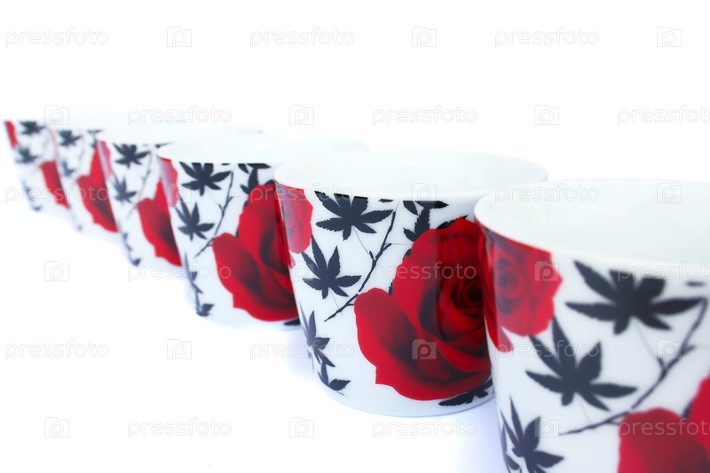 Кружки с цветочным узором на белом фоне