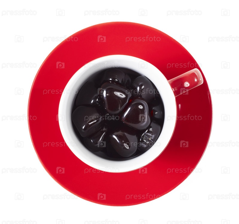 Красная чашка кофе с сердечками