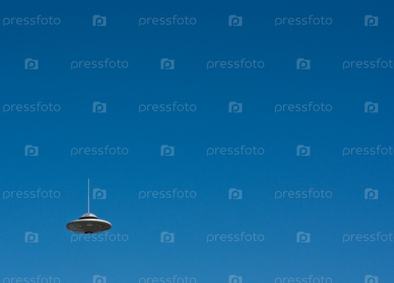 Одно НЛО (неопознанный летающий объект), летящее в ясном голубом небе