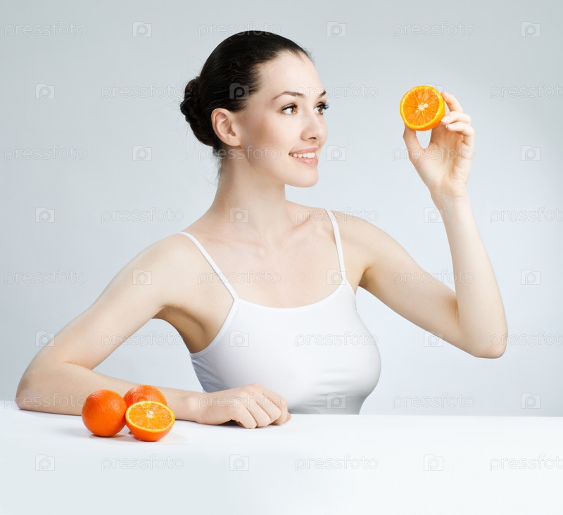 Красивая стройная девушка ест здоровую пищу