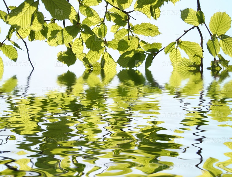 Ветви дерева отражаются в воде