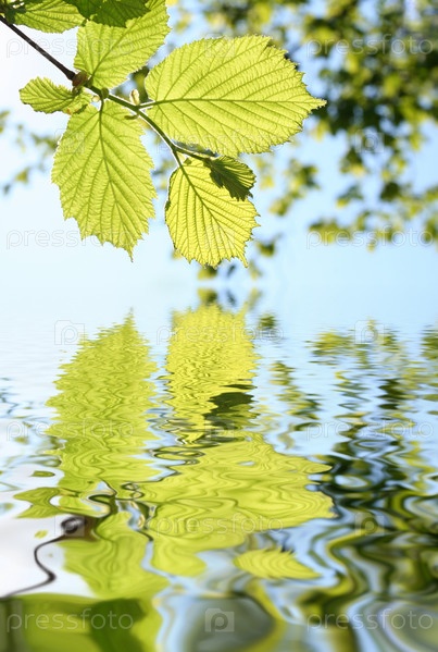 Веточка, отражающаяся в воде
