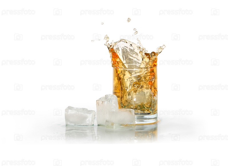 Стакан с виски и льдом на белом фоне