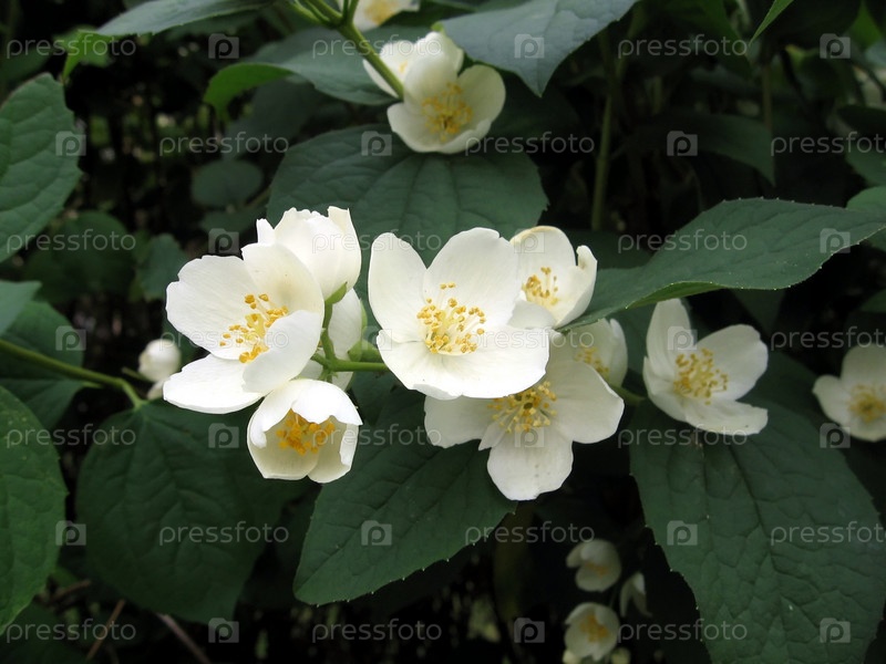 Белые цветы на фоне зеленых листьев