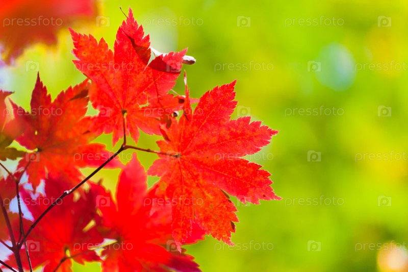 Осенний пейзаж. Красные кленовые листья
