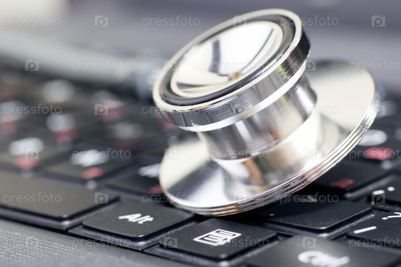 Стетоскоп на клавиатуре ноутбука