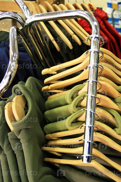 Вешалки с одеждой в магазине крупным планом