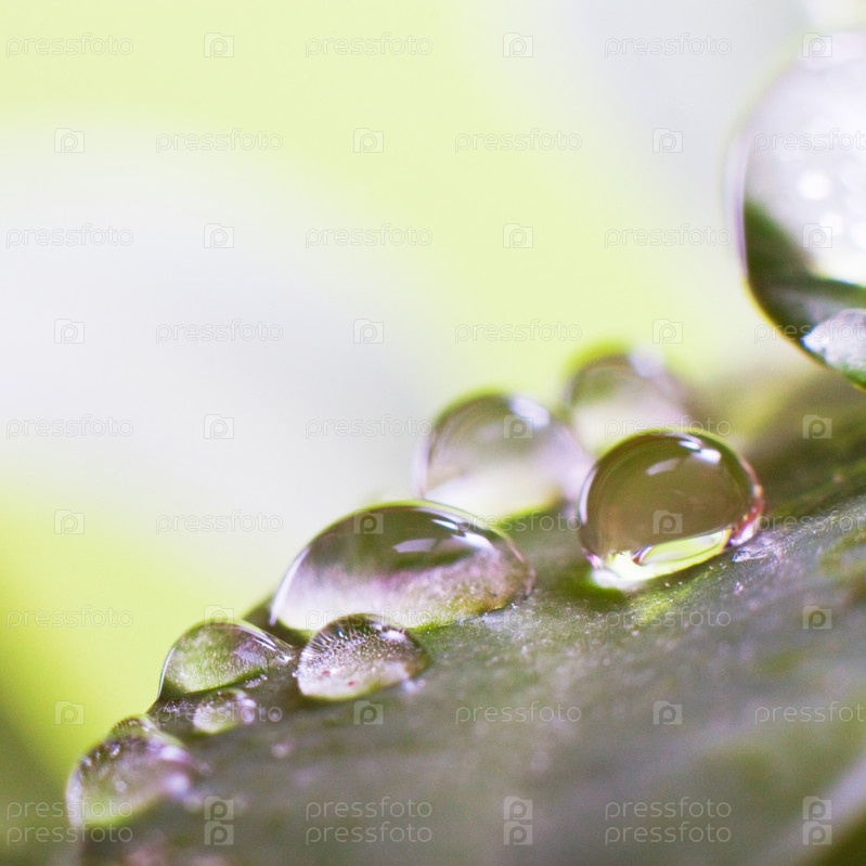Капли воды на зеленом листе крупным планом