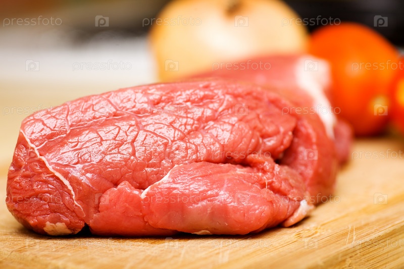 Сырая говядина на деревянной доске