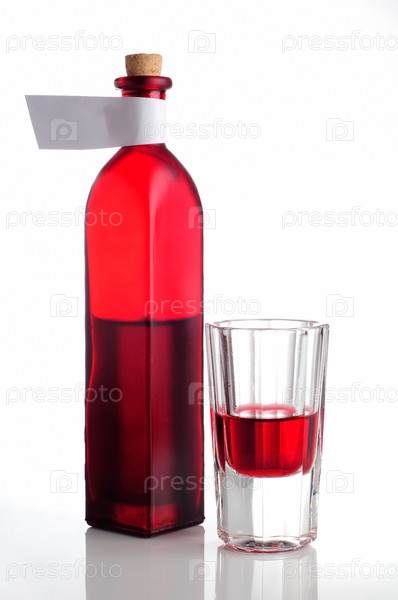 Бутылка и рюмка на зеркальной поверхности