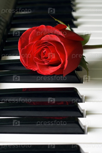 Красная роза на фортепианной клавиатуре