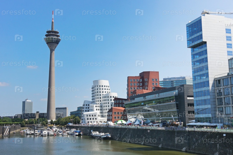 Порт Медиенхафен и Рейнская башня в Дюссельдорфе