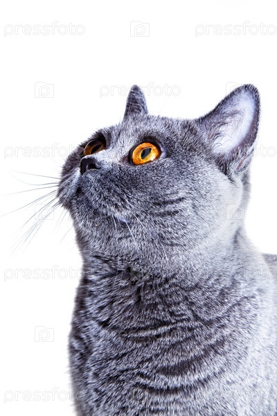 Серый кот на белом фоне