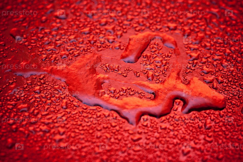 Сердце из капель воды на красном фоне