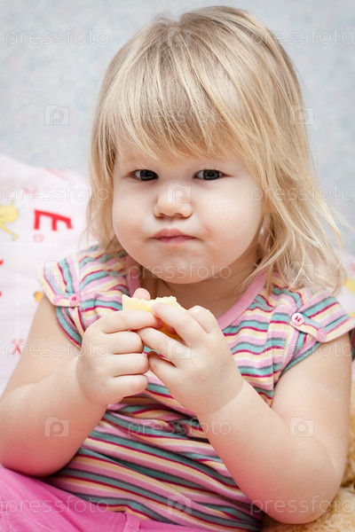 Портрет маленькой девочки с яблоком в руках