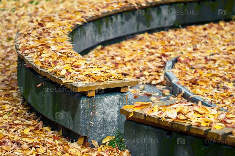 Скамейка в осенней листве