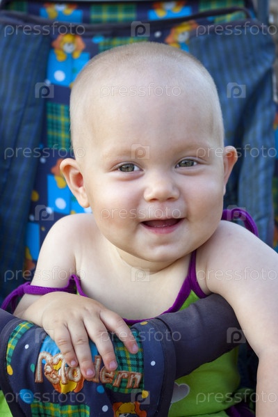 Маленькая девочка улыбается, сидя в коляске