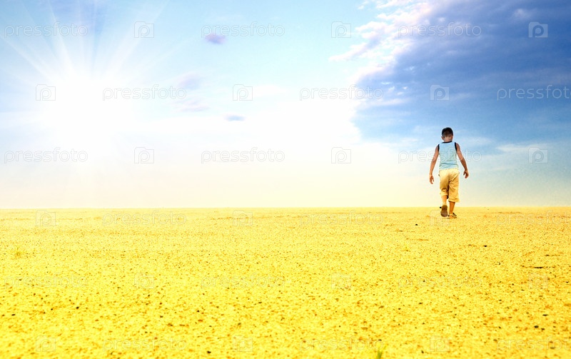 Мальчик идет по пустыне