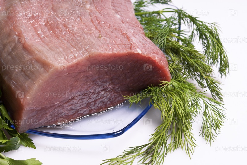 Кусок сырого мяса на тарелке