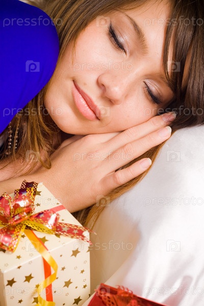 Красивая девушка спит с подарком