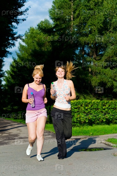 Две девушки бегут по дорожке