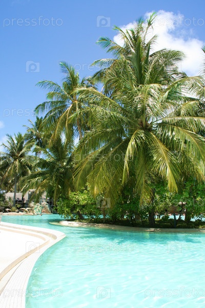Зеленые пальмы у бассейна