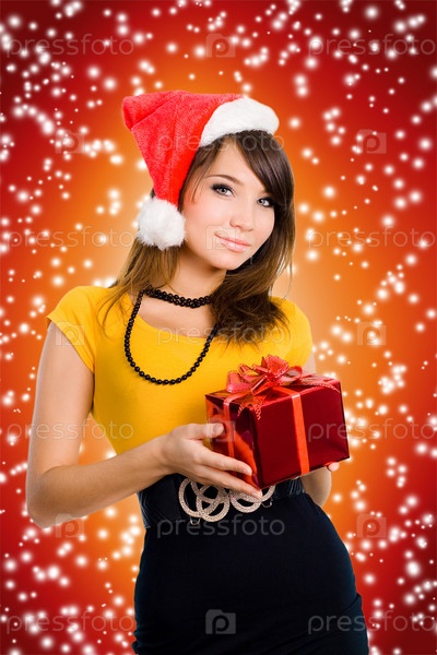 Девушка в красном колпачке и с подарком в руках