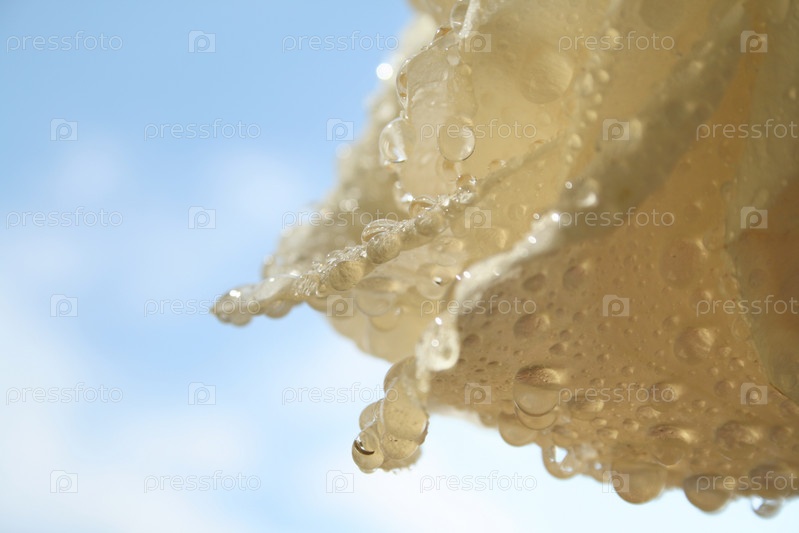 Роза с каплями воды на фоне неба