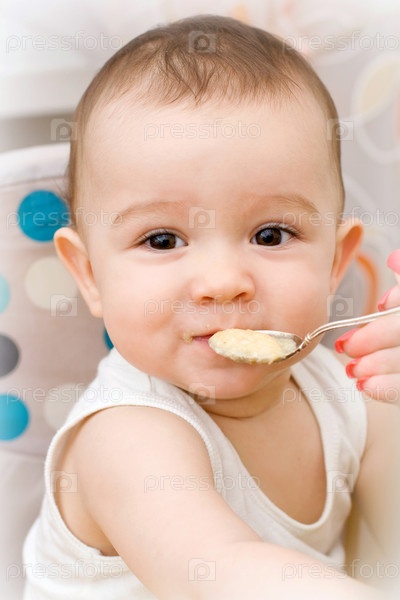 Портрет маленького мальчика, принимающего пищу