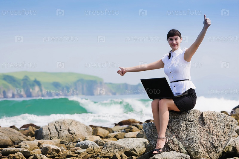 Деловая женщина на берегу моря